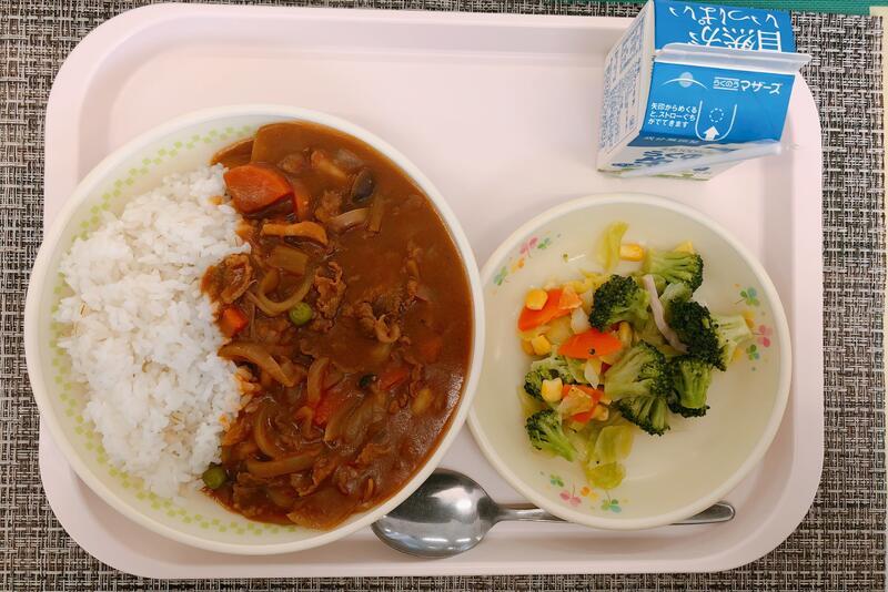 2月28日の給食は「ハヤシライス、牛乳、ブロッコリーサラダ」でした。