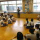 4時間目に、火災避難訓練を実施しました。この時期は、起こってほしくはないですが、全国のどこかで火事が起こっています。そこで本校でも、本日は、実際に理科室で火事が起きたことを想定して、訓練を行いました。消防署からも署員の方々にきていただき、訓練の様子を参観していただきました。その後、お話をいただいたり、実際に水の消火器を使って消火活動の練習を行ったりしました。今日の訓練で学んだことは、しっかりと振り返り、もしもの時に備えたいと思いました。消防署の皆様、ありがとうございました。(谷上)