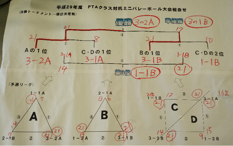 結果は3-2Aが優勝、3-1Bが準優勝、1-1Bが三位となりました。