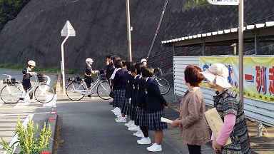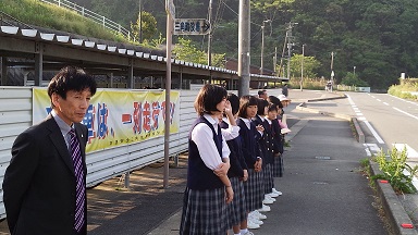 この「地域ふれ合いあいさつ運動」は、三角中学校運営協議会の活動の企画の一つとしてPTAをはじめとする地域の様々な学校を支援するボランティア団体などに働きかけて校区の教育力を高める取り組みにつなぐものです。
