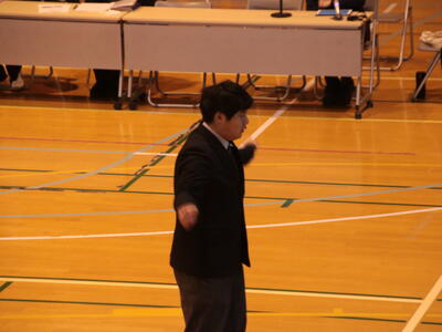 後半は部活動紹介。どの部活も一人でも多くの新入生に興味をもってもらえるよう、とても真面目にネタを考えていました。南中生のアイデアとパワーを感じる会になりました。