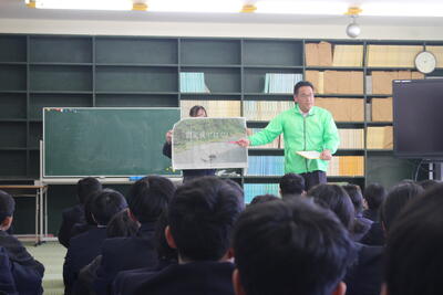 熊本地震の本震から10年となった4月16日(木)に地震の避難訓練を実施しました。本年度は、例年の避難訓練とは違い、余震を想定した訓練に取り組みました。生徒たちは真剣な表情で訓練に臨み、繰り返される余震のたびに安全を確保する行動をとっていました。