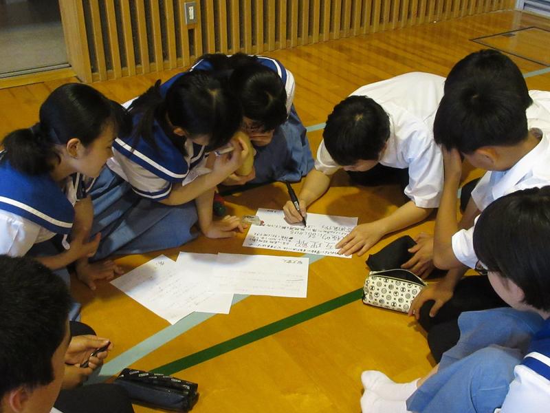 いじめのない学校をつくる 投稿日時 : 2019/07/06 承認者 6月27日(木)、全校生徒で「きずなを深める集会」を開催しました。この取り組みの特徴はPC班による縦割り班での話し合い活動を取り入れていることです。学年の枠を超えて真剣に考え、それぞれの意見に学びあう生徒の後姿は頼もしい限りでした。詳細は「学校紹介」コーナーの「校長室」に掲載しています『校長室通信第12号』をご覧ください。(校長 狹間) Tweet {{options.likeCount}} {{options.likeCount}} 0 コメント