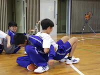 協力して片付けをおこなった後、「ドッジボール」をしました。一人ひとりが楽しく活動することと運動量を増やすことを目標に、意見を出し合いながら自分たちで活動をつくっていきました。日頃の体育の授業でも、指示に従って運動するだけではなく、よりよく運動するためにどうすべきかを考えながら授業に参加していることが伝わってきました。