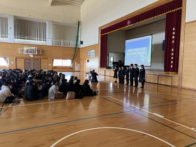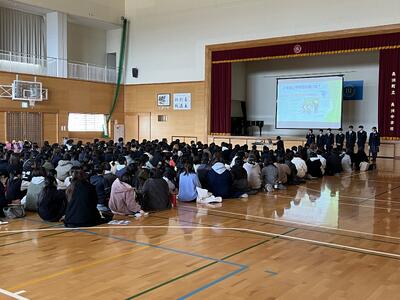 6年生の児童の皆さんは、本校生徒会や職員の説明をしっかり聞いていました。