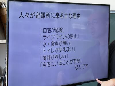 避難所に様々な事情を抱える人が来たり、支援物資の毛布などが届いたり、報道機関が取材に来たりと様々な出来事が起こり、それにどう対応するかグループで話し合い決めていきました。