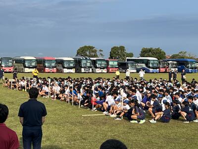 今朝、学校に集合し、出発式を行ない、阿蘇に向かいました。