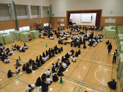 1年生が避難者、2,3年生が避難所運営という役割分担です。