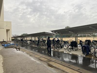 13日の朝は、残念ながら小雨がぱらつく中での登校でした。