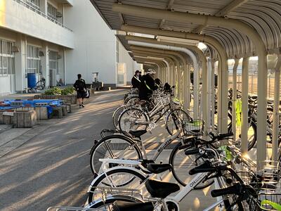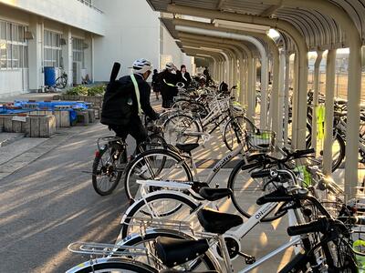 朝の冷え込みが厳しい中、顔を赤くしながら自転車や徒歩で登校していました。