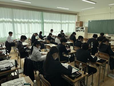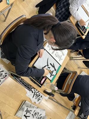1月15日に全校生徒一斉に書き初め大会を行いました。