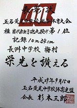 梅村さん、砲丸投げでみごと優勝です。