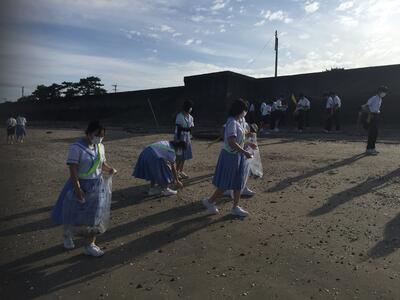 7/13(火)、長洲中学校恒例の海岸清掃を行いました。ボランティア委員の声かけで、約40名の生徒が、学校近くの海岸のゴミを拾いました。「少し前よりも、ゴミが少なくなった。」そんな声も聞こえてきました。この活動は月に一度のペースで、今後も続けていきます。