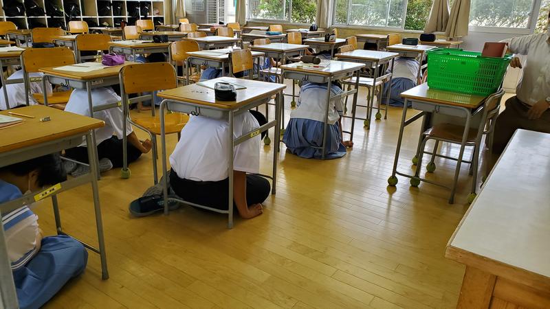 地震津波避難訓練を6/3に行いました。真剣な表情で取り組んでいました。