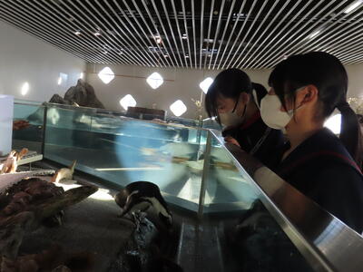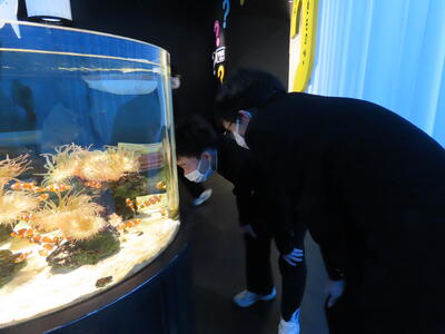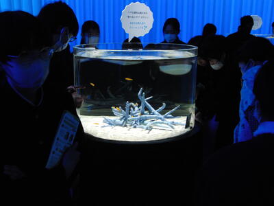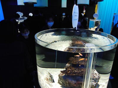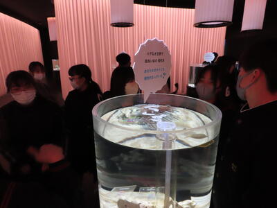 「いろにふれる」ゾーンでは、円形の水槽で360°から観ることができ、生き物の鮮やかな色や生態を観察することができました。