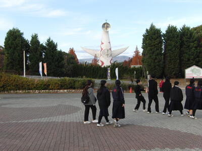 6時45分に学校正門前に集合しました。朝早く、暗く、寒くもありましたので、来た人からバスに乗り込み集合完了。新幹線に乗るために博多駅に向かいました。