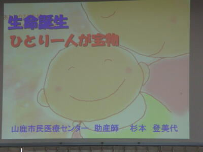 山鹿市民医療センターから、助産師の杉本 登美代 様に来校いただき、次のようなお話をしていただきました。