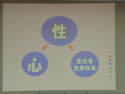 「性」に対しても「心」と「生きる・生まれる」を合わせた大切なこと。また、相手のことを思いやることが大切だと話されました。