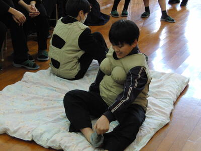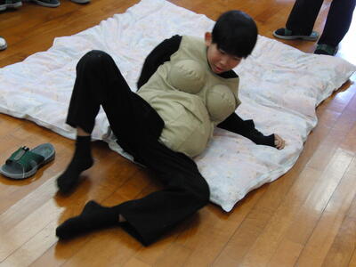 妊婦体験では、妊婦ジャケットを生徒が着用し、日常生活でも大変なことだと実感することができました。