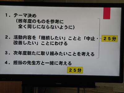 次年度のスローガンや各委員会の年間計画、南関中学校人権宣言など、これまでの先輩たちが築きあげてきたことを基に、さらにより良きものにするために、話し合ったり、考えたりしました。