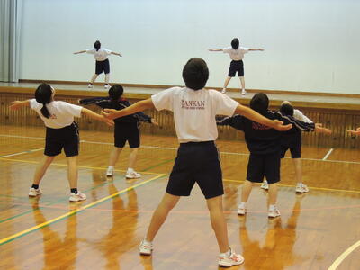 昨日までは、ラジオ体操や校歌等のいくつのグループに分かれての練習でしたが、今日は各団ごとに一斉に演舞とダンスの練習を行いました。