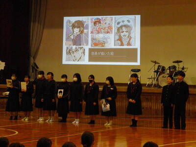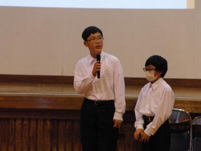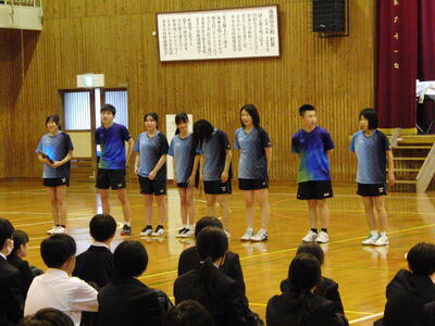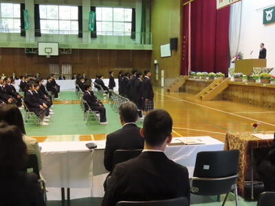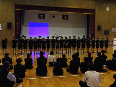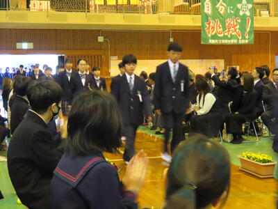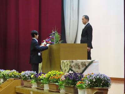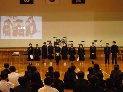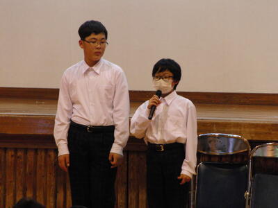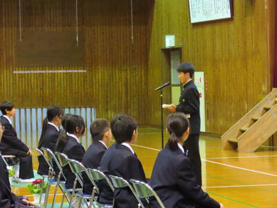 転入して来られた先生方が挨拶され、生徒代表が歓迎の言葉を述べました。
