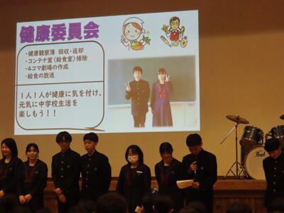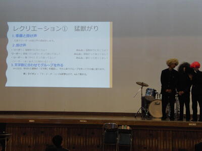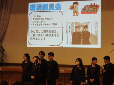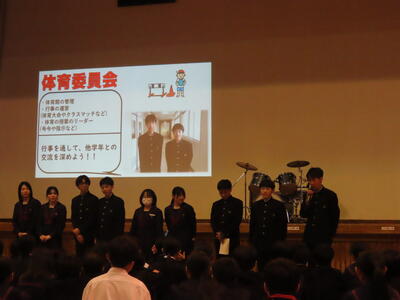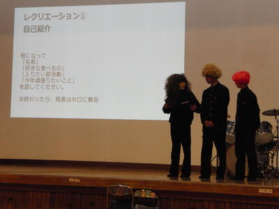 4月13日(月)の新入生歓迎行事の後半は、生徒会委員会の紹介とレクリェーションでした。