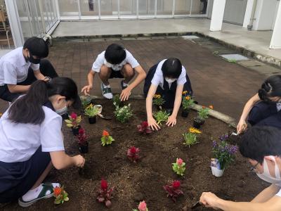 花壇の花植えをしました。 投稿日時 : 2021/05/17 学校サイト管理者 R3.5.17 学校の中庭に、環境委員が花の苗を植えてくれました。どの教室からも見えるので、これからきれいな花を咲かせ、みんなの心を和ませて欲しいと思います。