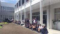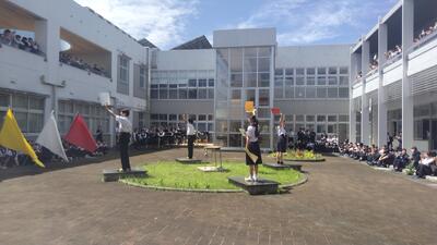 4/21(火)昼休み、中庭で、毎年恒例、体育大会の「団色決定」がありました。