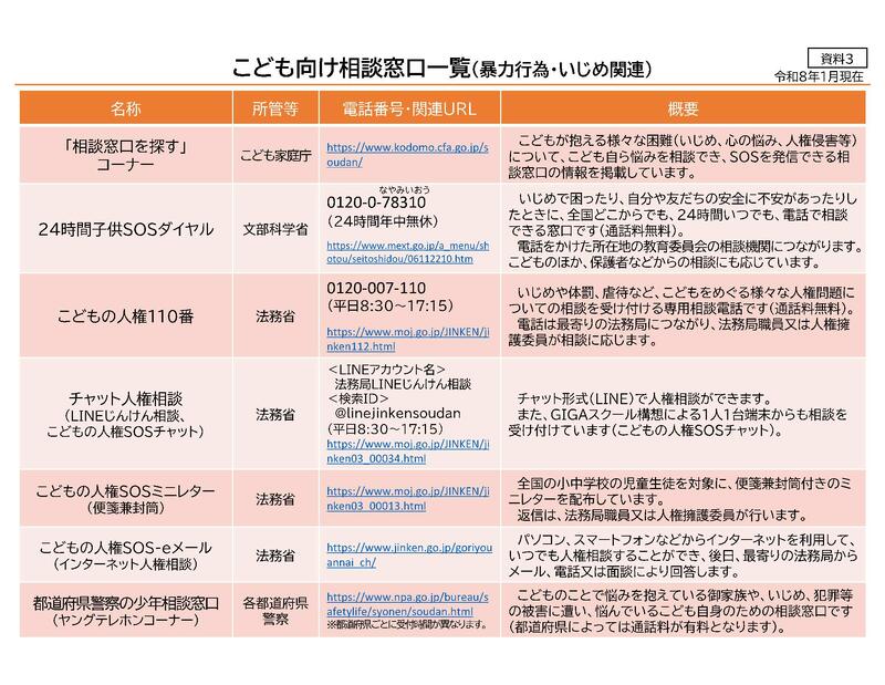 「こども向け相談窓口一覧(暴力行為・いじめ関連)」.pdf