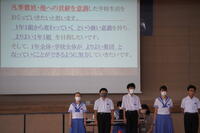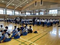校長先生からも、温かい激励のメッセージがありました。同じ部活動の仲間において、飽くなき「自己への挑戦は」そのまま「他への貢献」につながるということ、挨拶やマナーを守り、中学生らしい態度で試合に臨むことは、皆平等にチャンスが与えられているということをお話しされ、生徒達は、悔いのないように大会に挑むことを誓いました。