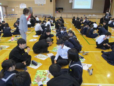 自分を想像しながら、付箋紙に書き出し、班で発表し合いました。