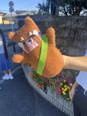 朝の正門にて、西南中マスコットキャラクター”シャイン”も笑顔でエールを送っています。
