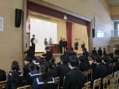 2月20日(金)の3、4校時目に、3年生の卒業式練習がありました。