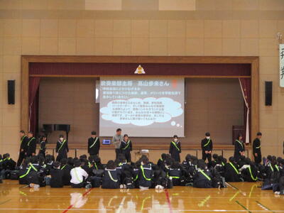 3月16日(月)の放課後、今年度最後となる「部活動集会」が、体育館で行われました。