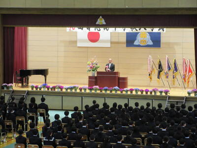 4月9日(木)色鮮やかな花々に囲まれ、本日、第47回西合志南中学校入学式を挙行いたしました。