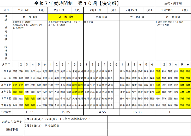 今週の時間割
