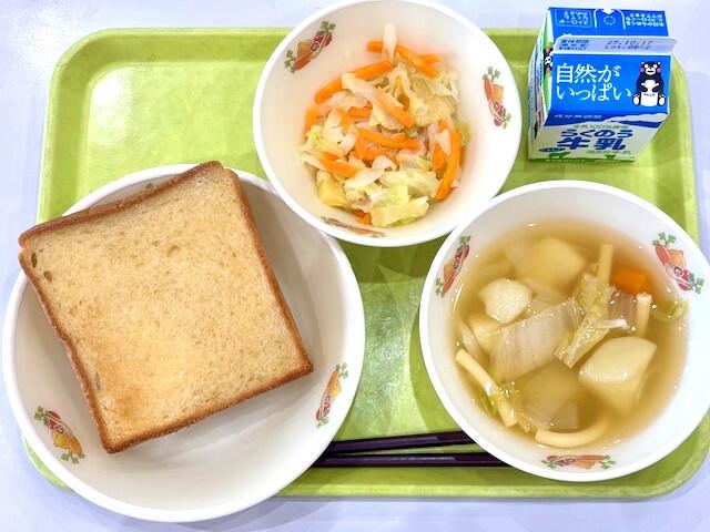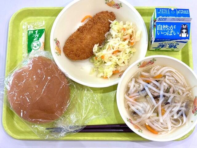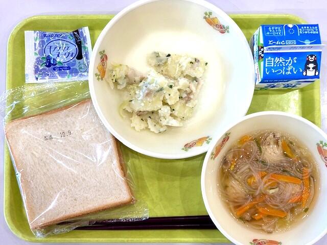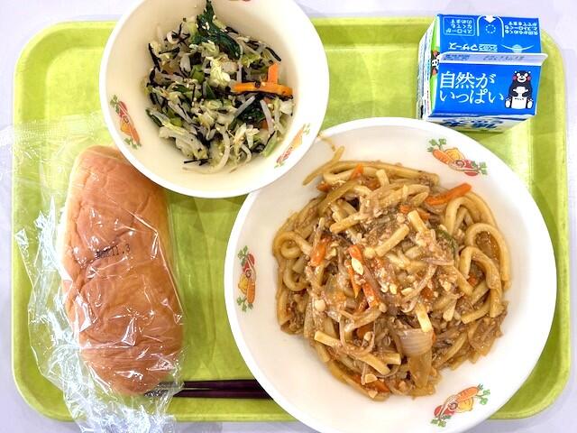 ココアパン、牛乳、親子うどん、キャンディーポテト