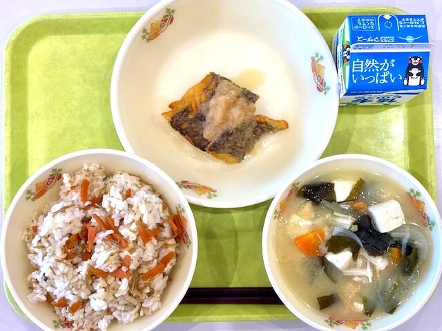 にんじゃこごはん、牛乳、魚のみぞれ和え、みそ汁