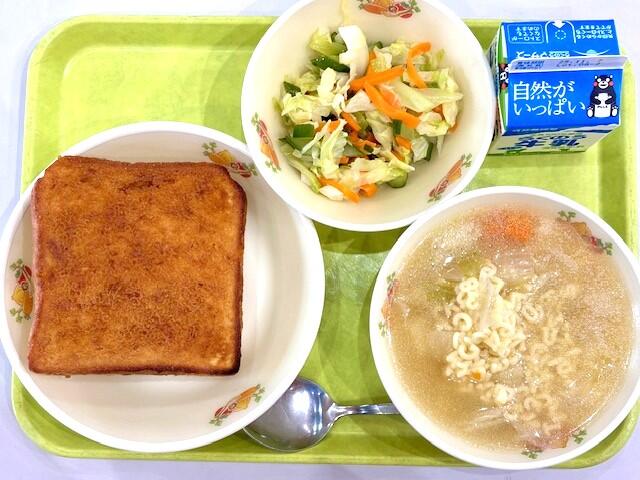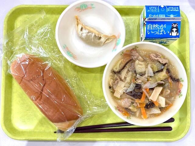 ミルクパン、牛乳、五目ラーメン、ぎょうざ