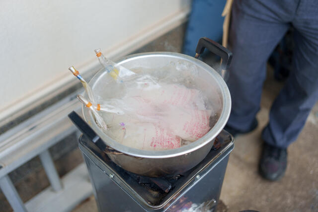 前回に続き、本校生徒が実際に訓練できるように機材等の準備、講義を実施