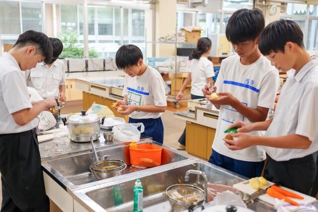 6月10日、全校生徒による「さつまいもの苗植え」を行いました。学校運営協議会委員の方々や地元農家のご協力のもと、学校近くの畑にさつまいもを植え付けることができました。今年度、西原中では1年生から3年生までを「縦割り班」にして活動を行う機会を多く設けています。今回のいも植えも3学年一緒に、3年生が1、2年生をリードしながら行いました。みんな久しぶりの土いじりに楽しそうに勤しみ、よいストレス発散になっているようでした。秋の収穫時には、秋の味覚を堪能できることを楽しみにして、さつまいもの成長を見守っていきます。