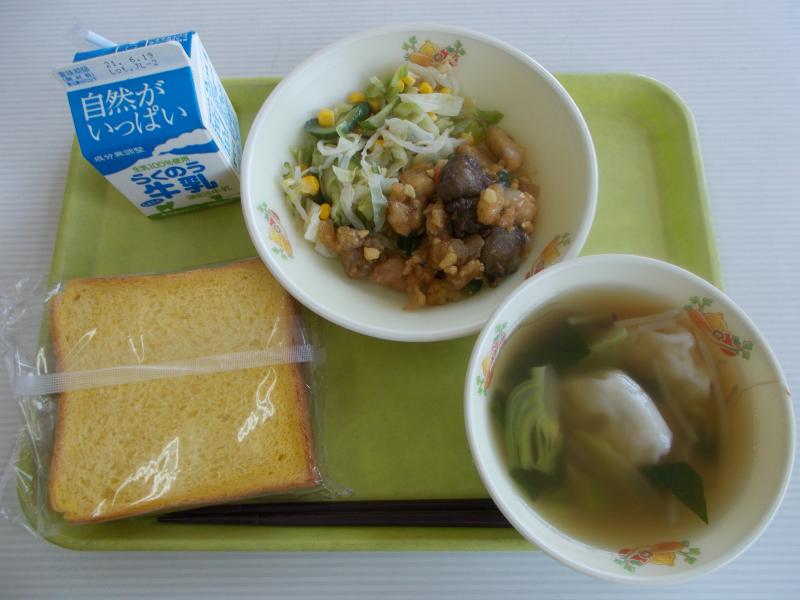 ミクルパン、牛乳、ちゃんぽん、豆腐のシューマイ、りんご