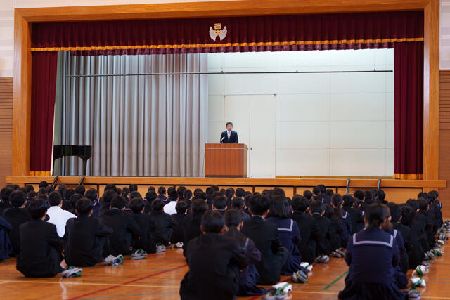 校長先生からは、吉田松陰の「志を立てて、もって万事の源となす」という言葉を引用して「何事も高い目標をもって、物事に取り組んでいきましょう」というお話がありました。