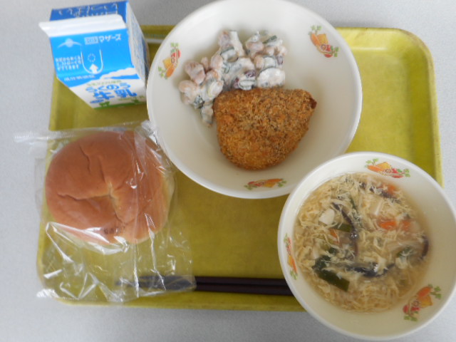 今日のスープはスーミータン。漢字では「粟米湯」と書きますが、