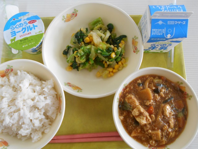 3月7日ランチメニュー 投稿日時 : 2018/03/07 Qshoku 【3月7日のメニュー】・麦ごはん・マーボー豆腐・菜の花あえ・ヨーグルト・牛乳 3年生のリクエスト給食第3弾!マーボー豆腐が大好評でした!!!