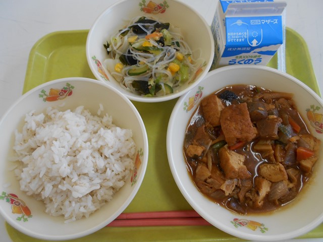 11月9日のランチメニュー 投稿日時 : 2017/11/09 Qshoku 【11月9日のメニュー】・麦ごはん・チャージャン豆腐・春雨サラダ・牛乳豆腐にしっかり味が染みこんでいて、とても美味しかったです!