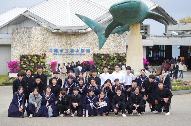 2年生は1月20日(火)から22日(木)まで2泊3日で沖縄への修学旅行に行ってきました。沖縄では「ひめゆり平和祈念資料館」や「平和祈念公園」で第二次世界大戦の沖縄戦について学び、「美ら海水族館」では沖縄の海の多様な生物を見学しました。また、最終日は「国際通り」で自由な散策を楽しみ、沖縄を満喫できたようでした。