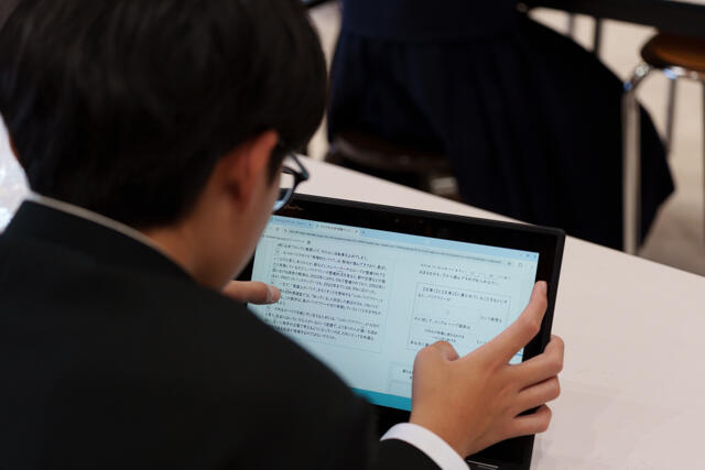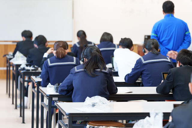 12月4日(木)から2日間、1・2年生を対象にCBT(Computer Based Testing)方式による熊本県の学力・学習状況調査(県学調)が実施されました。受験生はタブレット端末を使用し、画面上の設問に対してマウスやキーボードで解答を入力しました。設問の中には音声や動画コンテンツを視聴して解答する形式もあり、デジタル環境下での実践的な対応力が試されました。今後はこのようなCBT形式のテストが標準となる見込みであり、学校全体でこの新しい試験方式への対応を進めていきたいと考えています。