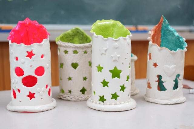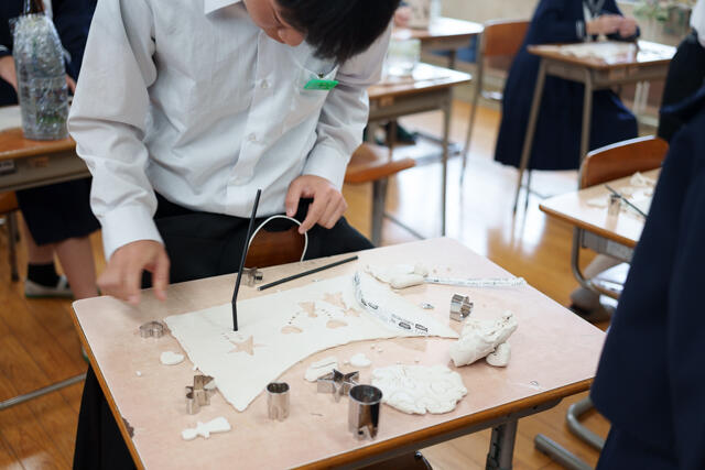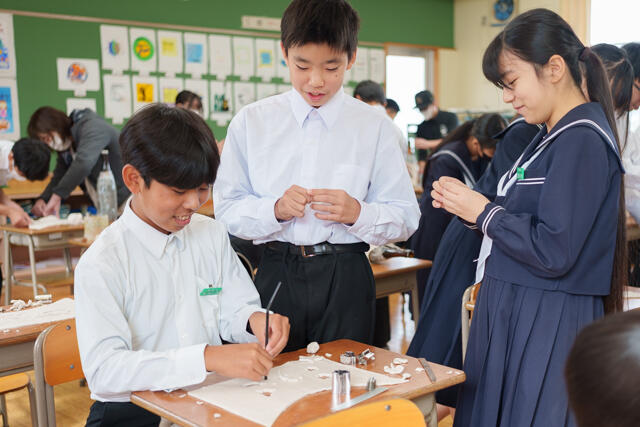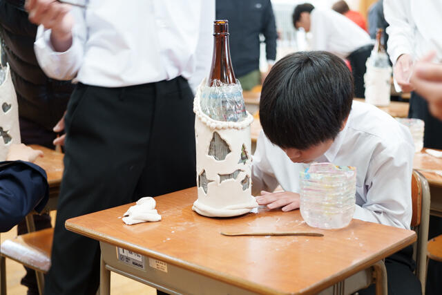 11月20日(木)1年生の美術の時間で「キャンドルシェード」の制作を行いました。このキャンドルシェードは、毎年2月に西原村商工会が主催する「冬あかり」のイベントで灯されます。今年も制作にあたり、商工会の方々が多数応援に駆けつけてくださいました。西原中学校では、生徒たちが代々このキャンドルシェードを制作しており、「冬あかり」では、3,000個以上のキャンドルが夜の馬頭山公園を照らします。今回1年生が新しく制作したキャンドルシェードもこの仲間に加わり、来年2月の「冬あかり」で美しい灯をともしてくれると思います。